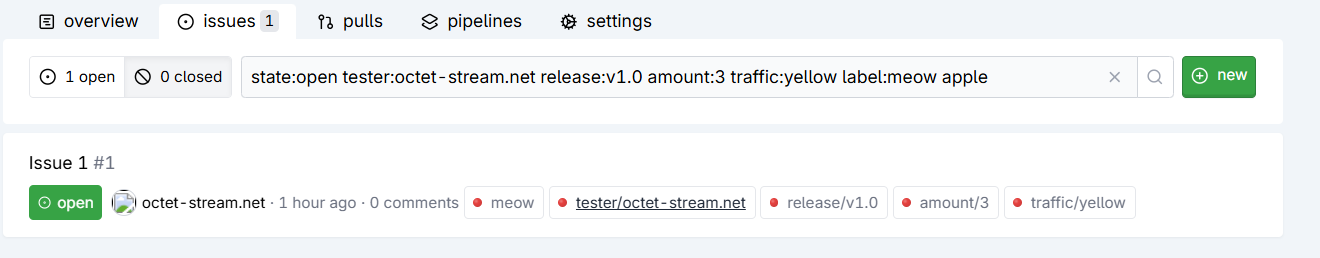 ··· 158 158 return q.Get(key) != nil 159 159 } 160 160 161 + // KnownTags is the set of tag keys with special system-defined handling. 162 + // Any tag:value pair whose key is not in this set is treated as a dynamic 163 + // label filter. 164 + var KnownTags = map[string]bool{ 165 + "state": true, 166 + "author": true, 167 + "label": true, 168 + } 169 + 170 + // GetDynamicTags returns composite "key:value" strings for all non-negated 171 + // tag:value items whose key is not a known system tag. 172 + func (q *Query) GetDynamicTags() []string { 173 + var result []string 174 + for _, item := range q.items { 175 + if item.Kind == KindTagValue && !item.Negated && !KnownTags[item.Key] { 176 + result = append(result, item.Key+":"+item.Value) 177 + } 178 + } 179 + return result 180 + } 181 + 182 + // GetNegatedDynamicTags returns composite "key:value" strings for all negated 183 + // tag:value items whose key is not a known system tag. 184 + func (q *Query) GetNegatedDynamicTags() []string { 185 + var result []string 186 + for _, item := range q.items { 187 + if item.Kind == KindTagValue && item.Negated && !KnownTags[item.Key] { 188 + result = append(result, item.Key+":"+item.Value) 189 + } 190 + } 191 + return result 192 + } 193 + 161 194 func (q *Query) Set(key, value string) { 162 195 raw := key + ":" + value 163 196 found := false